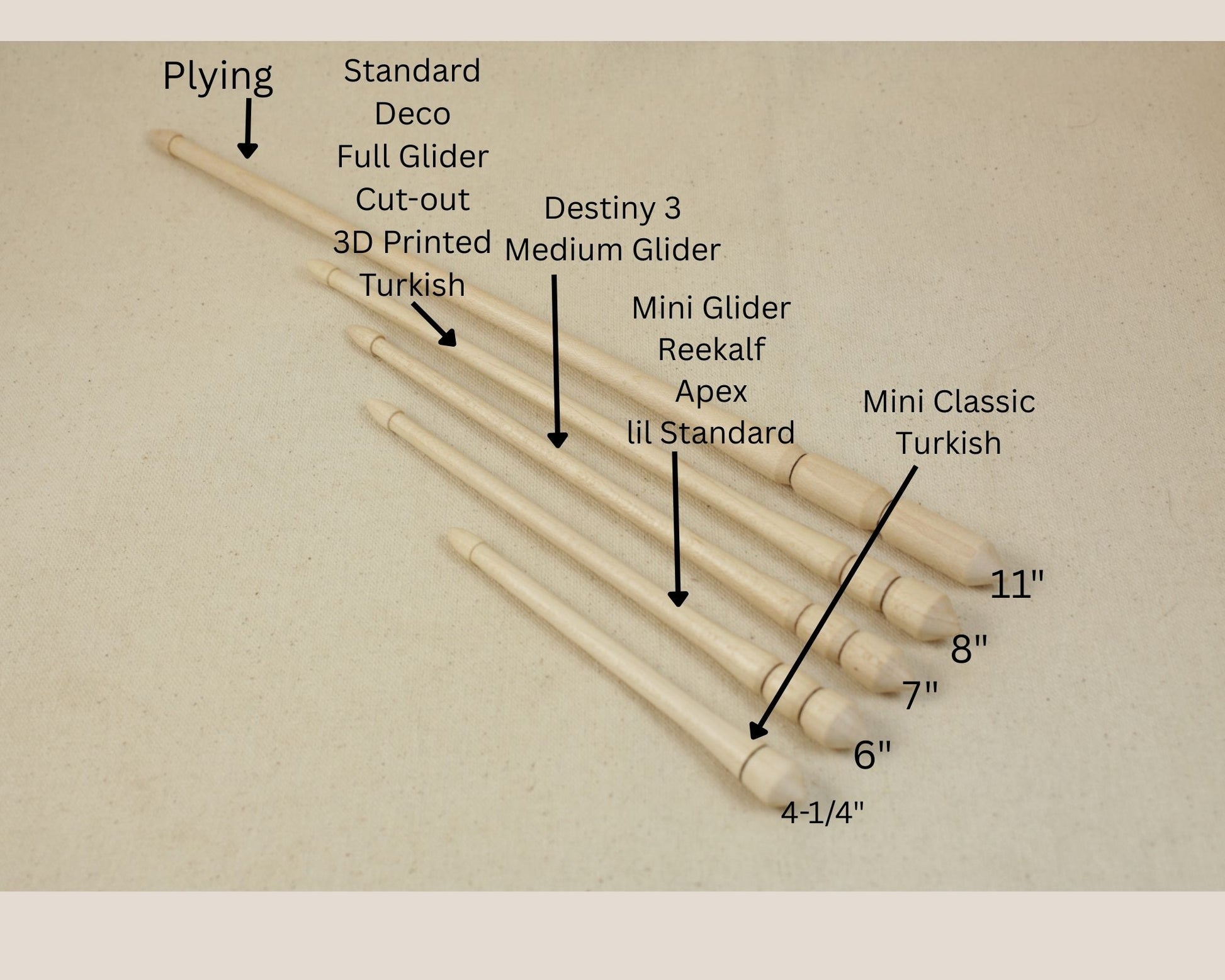 *Please note the 11" shaft does not pair with any of our spindles except the plying